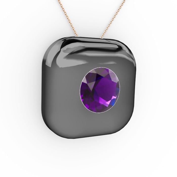 Ametist 925 ayar siyah rodyum kaplama gümüş kolye (40 cm rose altın rolo zincir)