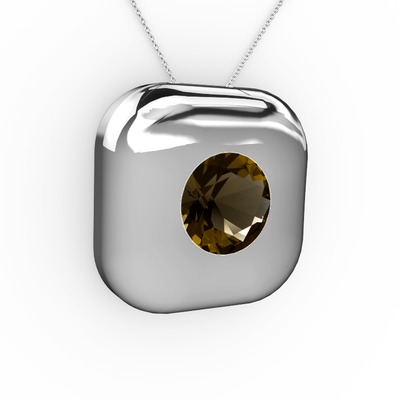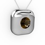 Dumanlı kuvars 14 ayar beyaz altın kolye (40 cm beyaz altın rolo zincir)