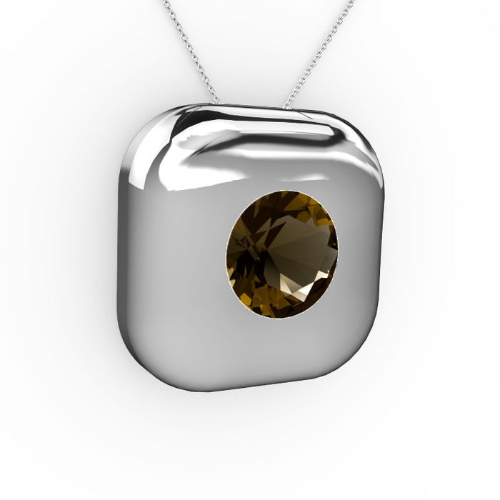 Dumanlı kuvars 18 ayar beyaz altın kolye (40 cm beyaz altın rolo zincir)