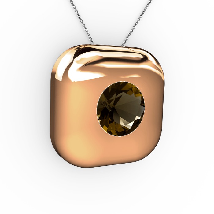 Dumanlı kuvars 18 ayar rose altın kolye (40 cm gümüş rolo zincir)