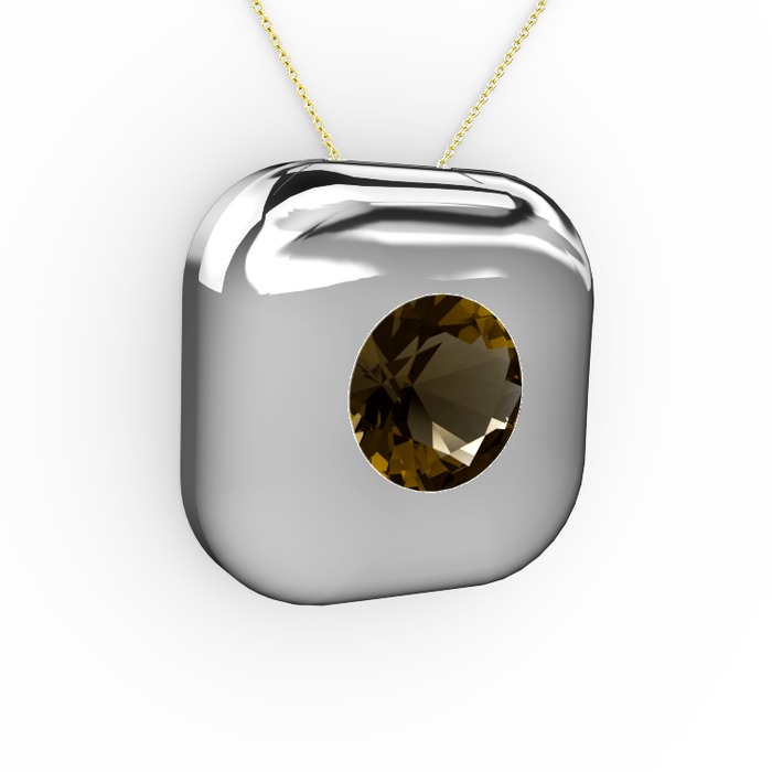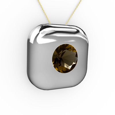 Dumanlı kuvars 8 ayar beyaz altın kolye (40 cm altın rolo zincir)
