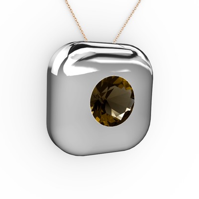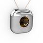 Dumanlı kuvars 8 ayar beyaz altın kolye (40 cm gümüş rolo zincir)