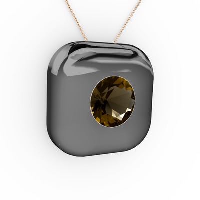 Dumanlı kuvars 925 ayar siyah rodyum kaplama gümüş kolye (40 cm gümüş rolo zincir)