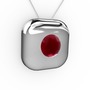 Kök yakut 8 ayar beyaz altın kolye (40 cm beyaz altın rolo zincir)