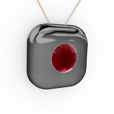 Kök yakut 925 ayar siyah rodyum kaplama gümüş kolye (40 cm rose altın rolo zincir)