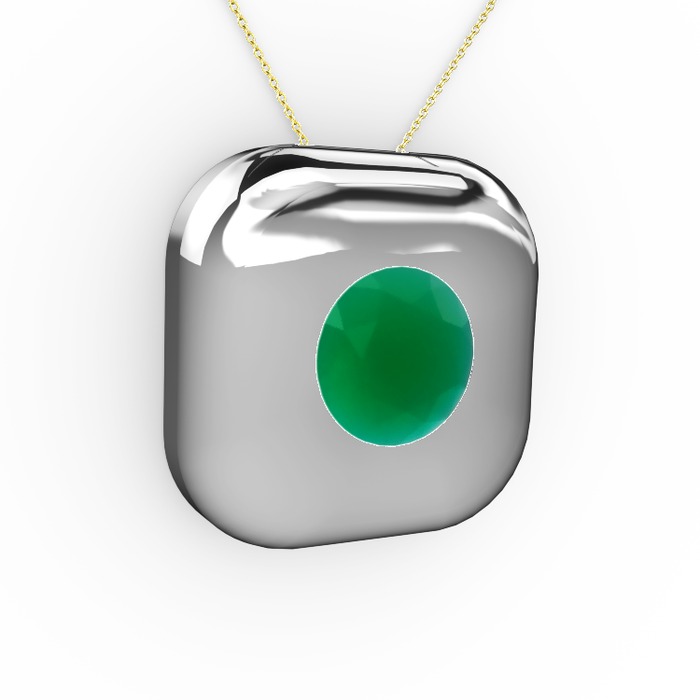 Kök zümrüt 18 ayar beyaz altın kolye (40 cm altın rolo zincir)