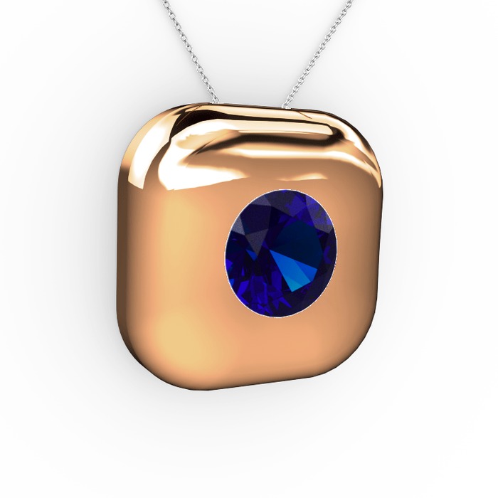 Lab safir 18 ayar rose altın kolye (40 cm beyaz altın rolo zincir)