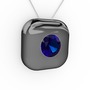 Lab safir 925 ayar siyah rodyum kaplama gümüş kolye (40 cm beyaz altın rolo zincir)