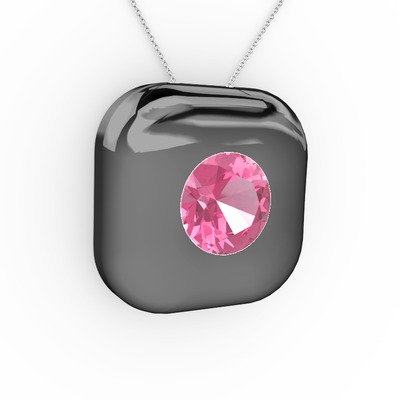 Pembe kuvars 925 ayar siyah rodyum kaplama gümüş kolye (40 cm beyaz altın rolo zincir)