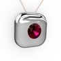 Rodolit garnet 925 ayar gümüş kolye (40 cm rose altın rolo zincir)