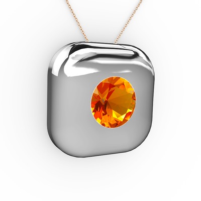 Sitrin 8 ayar beyaz altın kolye (40 cm rose altın rolo zincir)
