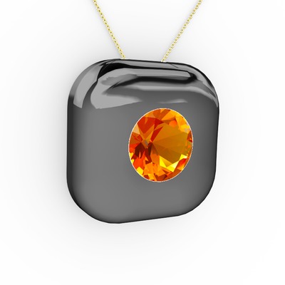 Sitrin 925 ayar siyah rodyum kaplama gümüş kolye (40 cm altın rolo zincir)