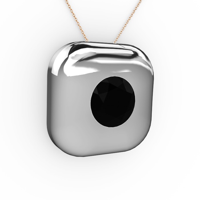 Siyah zirkon 14 ayar beyaz altın kolye (40 cm gümüş rolo zincir)
