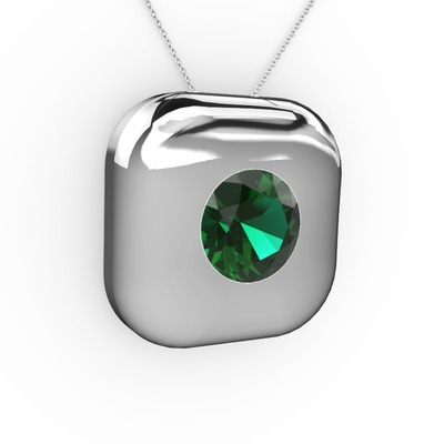 Yeşil kuvars 14 ayar beyaz altın kolye (40 cm beyaz altın rolo zincir)