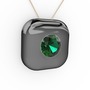 Yeşil kuvars 925 ayar siyah rodyum kaplama gümüş kolye (40 cm rose altın rolo zincir)