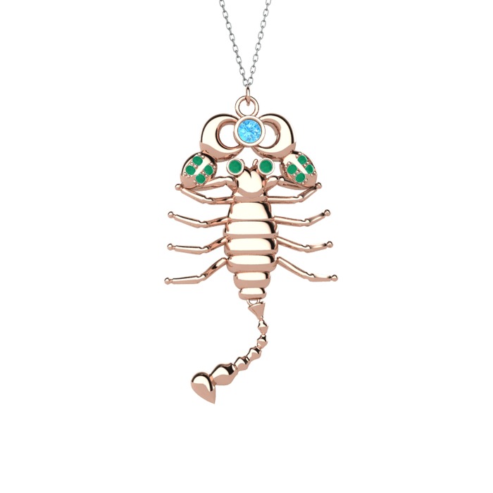 Akuamarin ve kök zümrüt 8 ayar rose altın kolye (40 cm beyaz altın rolo zincir)