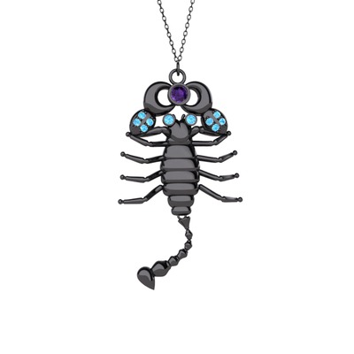 Ametist ve akuamarin 925 ayar siyah rodyum kaplama gümüş kolye (40 cm gümüş rolo zincir)