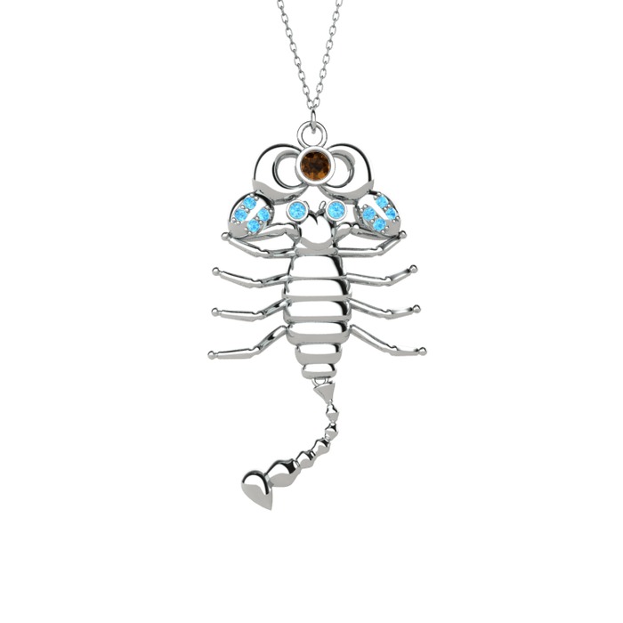 Dumanlı kuvars ve akuamarin 18 ayar beyaz altın kolye (40 cm beyaz altın rolo zincir)