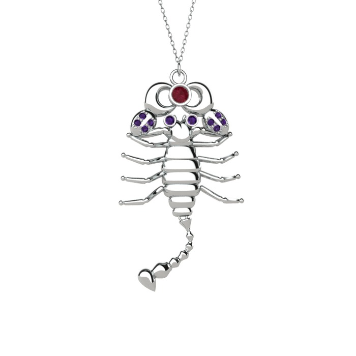 Kök yakut ve ametist 18 ayar beyaz altın kolye (40 cm beyaz altın rolo zincir)