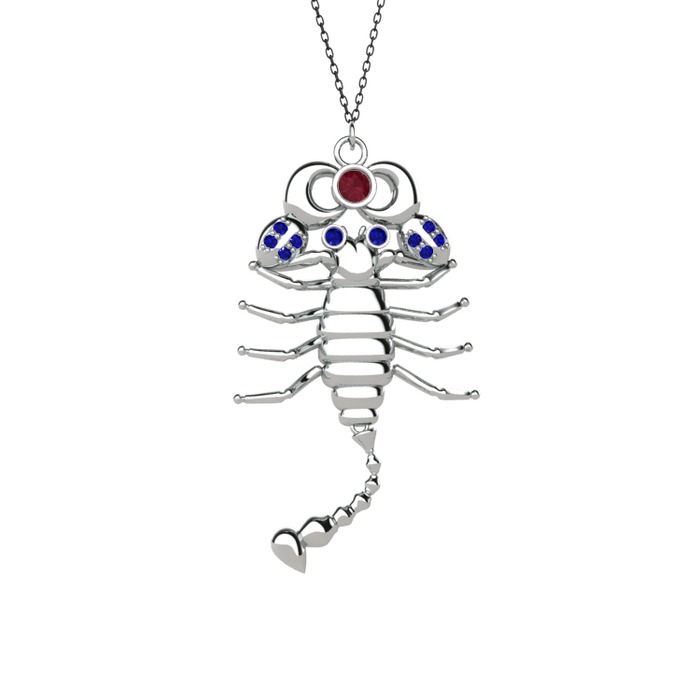 Kök yakut ve lab safir 18 ayar beyaz altın kolye (40 cm gümüş rolo zincir)