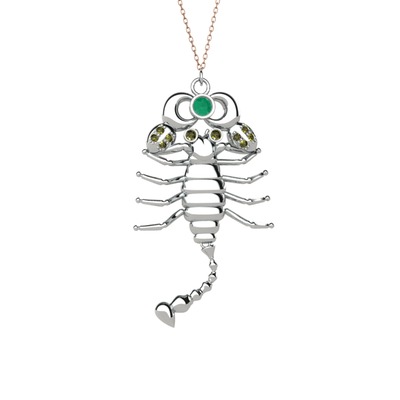 Kök zümrüt ve peridot 925 ayar gümüş kolye (40 cm gümüş rolo zincir)