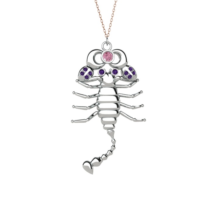 Pembe kuvars ve ametist 925 ayar gümüş kolye (40 cm gümüş rolo zincir)