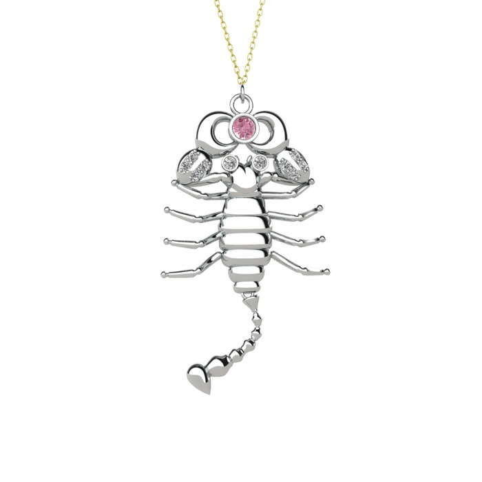 Pembe kuvars ve beyaz zirkon 925 ayar gümüş kolye (40 cm altın rolo zincir)