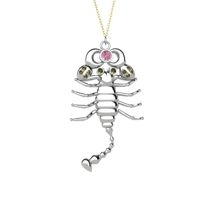 Pembe kuvars ve peridot 8 ayar beyaz altın kolye (40 cm altın rolo zincir)