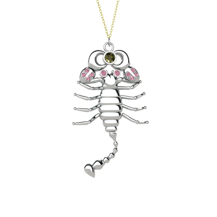 Peridot ve pembe kuvars 925 ayar gümüş kolye (40 cm altın rolo zincir)