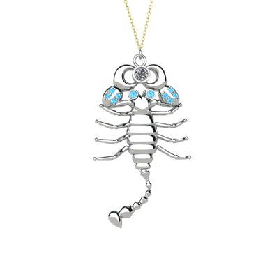 Pırlanta ve akuamarin 925 ayar gümüş kolye (0.24 karat, 40 cm altın rolo zincir)