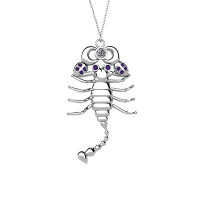 Pırlanta ve ametist 14 ayar beyaz altın kolye (0.24 karat, 40 cm beyaz altın rolo zincir)