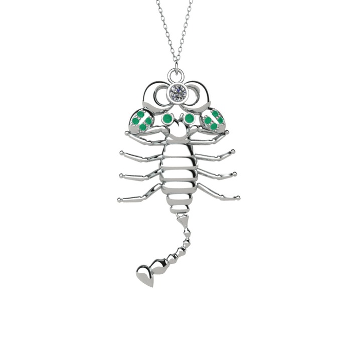 Pırlanta ve kök zümrüt 14 ayar beyaz altın kolye (0.24 karat, 40 cm beyaz altın rolo zincir)