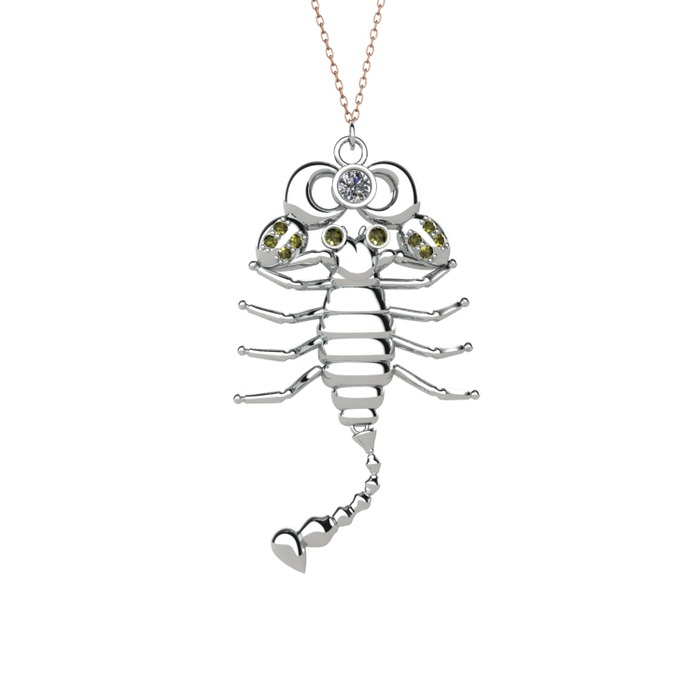 Pırlanta ve peridot 18 ayar beyaz altın kolye (0.24 karat, 40 cm rose altın rolo zincir)