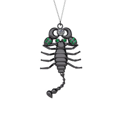 Pırlanta ve yeşil kuvars 925 ayar siyah rodyum kaplama gümüş kolye (0.24 karat, 40 cm beyaz altın rolo zincir)