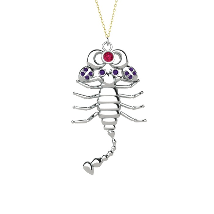 Rodolit garnet ve ametist 14 ayar beyaz altın kolye (40 cm altın rolo zincir)