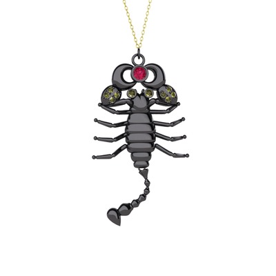Rodolit garnet ve peridot 925 ayar siyah rodyum kaplama gümüş kolye (40 cm altın rolo zincir)