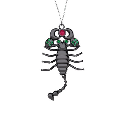 Rodolit garnet ve yeşil kuvars 925 ayar siyah rodyum kaplama gümüş kolye (40 cm beyaz altın rolo zincir)