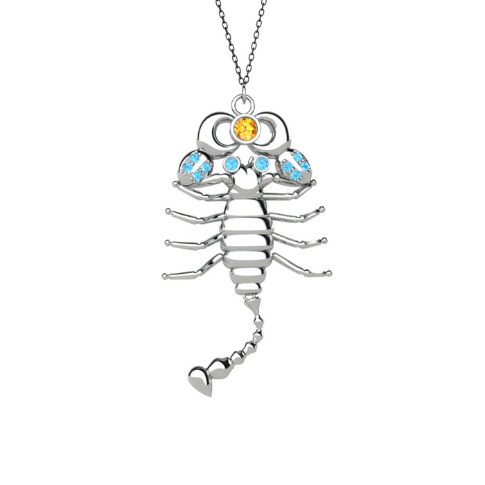 Sitrin ve akuamarin 18 ayar beyaz altın kolye (40 cm gümüş rolo zincir)