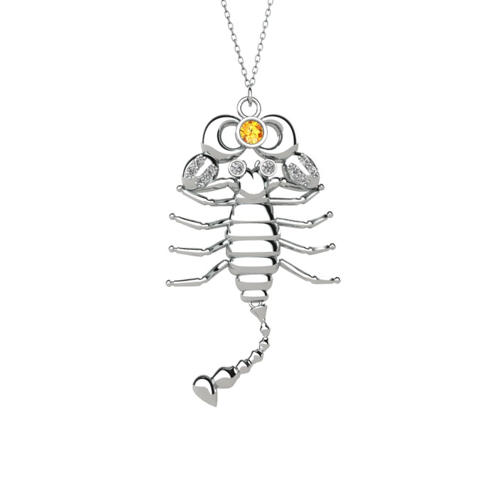 Sitrin ve beyaz zirkon 14 ayar beyaz altın kolye (40 cm beyaz altın rolo zincir)