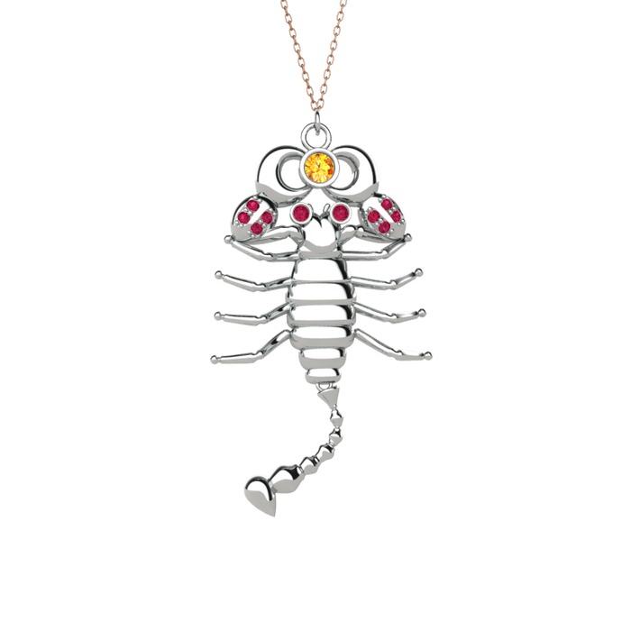 Sitrin ve rodolit garnet 8 ayar beyaz altın kolye (40 cm rose altın rolo zincir)