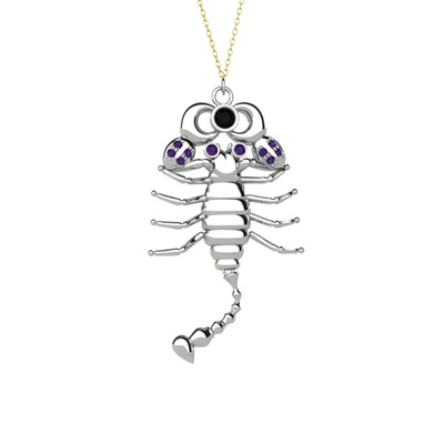 Siyah zirkon ve ametist 925 ayar gümüş kolye (40 cm altın rolo zincir)