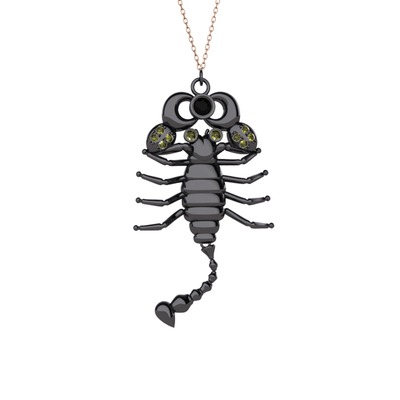 Siyah zirkon ve peridot 925 ayar siyah rodyum kaplama gümüş kolye (40 cm rose altın rolo zincir)