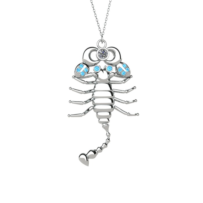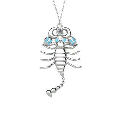 Swarovski ve akuamarin 925 ayar gümüş kolye (40 cm beyaz altın rolo zincir)