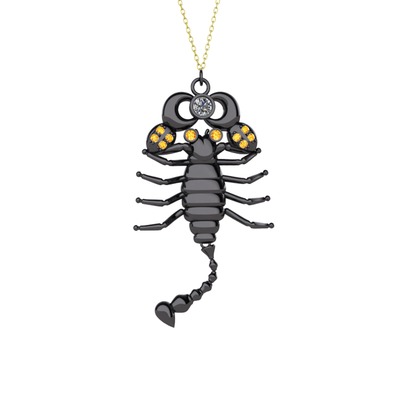 Swarovski ve sitrin 925 ayar siyah rodyum kaplama gümüş kolye (40 cm altın rolo zincir)