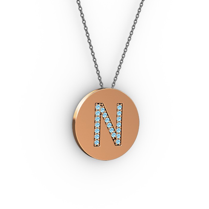 Akuamarin 8 ayar rose altın kolye (40 cm gümüş rolo zincir)