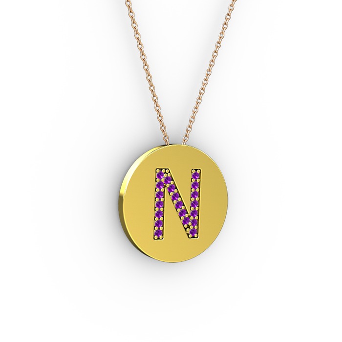 Ametist 14 ayar altın kolye (40 cm rose altın rolo zincir)