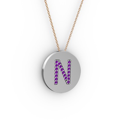 Ametist 8 ayar beyaz altın kolye (40 cm rose altın rolo zincir)