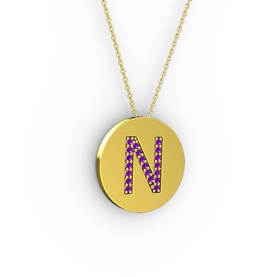 Ametist 925 ayar altın kaplama gümüş kolye (40 cm gümüş rolo zincir)