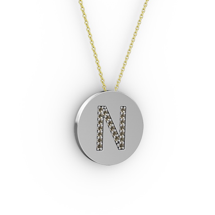 Dumanlı kuvars 14 ayar beyaz altın kolye (40 cm altın rolo zincir)