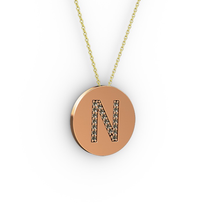 Dumanlı kuvars 18 ayar rose altın kolye (40 cm altın rolo zincir)